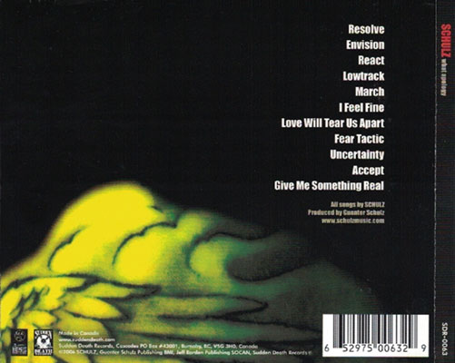 Sudden Death RecordsSchulz - What Apology CD2006 album from Guenter Schulz (KMFDM guitarist) Powerful, dancy and memorable tunes...