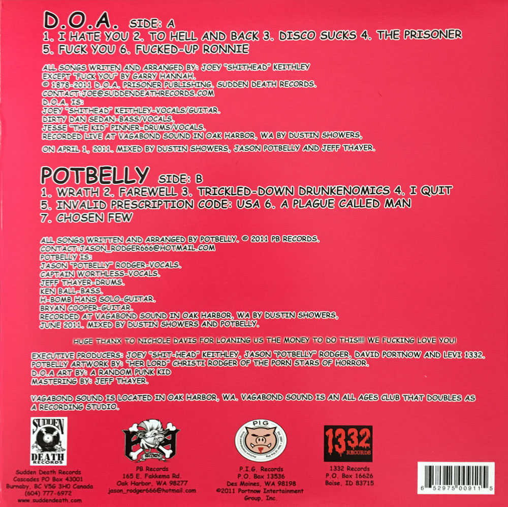 2011 Split Live LP with D.O.A. and Potbelly titled The Vagabond Sessions recorded in Oak Harbor WA.